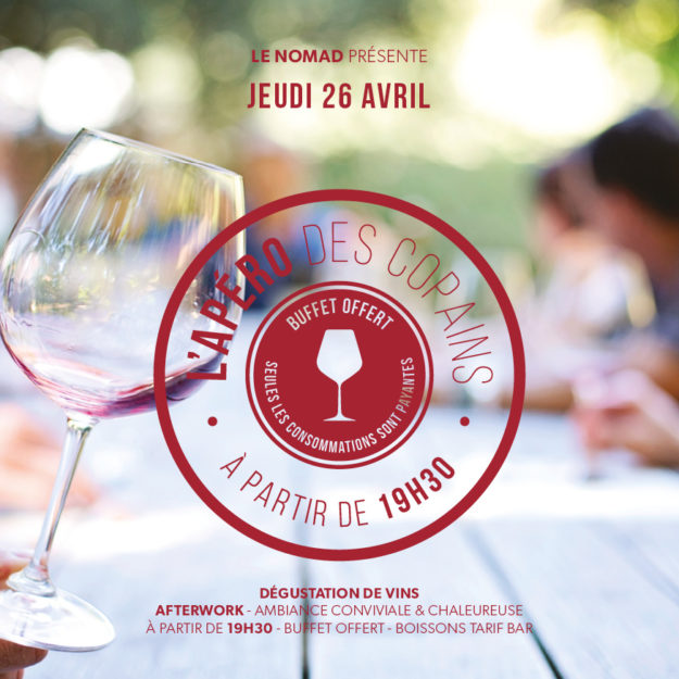 Jeudi 12 Avril 2018 – à partir de 19h30 – buffet offert et boissons tarif bar.
